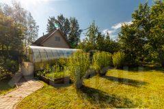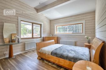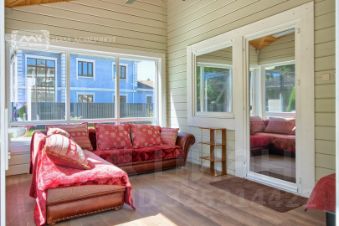 Лот: 9917187. Предлагается к продаже кирпичный особняк с благородным деревянным сайдингом с резными элементами в стилистике ''Сестрорецких дач''. Дом оснащен современными технологиями, кровля выполнена из высококачественного цинк-титана от немецкого производителя Rheinzink. Интерьеры выполнены по индивидуальному дизайн-проекту с использованием натуральных материалов, дом полностью оснащен всем необходимым, меблирован. Кухня оснащена печью Aga для варки и тушения на медленном огне и встроенной мебелью немецкого производства Bulthaup. Из столовой открывается вид на просторную террасу с зоной барбекю и сосновый участок 50 соток. Участок граничит с рекой Сестрой, на котором двухуровневый дом органично вписан в ландшафт. На верхнем уровне из просторной гостиной можно выйти на вторую террасу с лежаками, выходящую на западную сторону. В основной зоне 3 спальни с ванными комнатами и гардеробной. На цокольном этаже располагаются кабинет, гостевая спальня, тренажерный зал, подсобные помещения с зонами хранения и постирочной. По переходу можно пройти в зону бани с летней кухней и выходом во внутреннюю часть двора с террасой. Уникальность расположения с городской инфраструктурой вблизи пляжей Финского залива.
