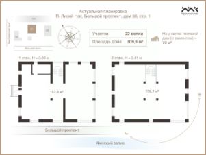 В продаже кирпичный дом площадью 423 м² с гаражом на участке ИЖС 25 соток в закрытом коттеджном посёлке ''Северный Версаль''. Приморский район Санкт-Петербурга, в районе Лахта-Ольгино.В представленном объекте сходятся удобная локация, высокий статус посёлка, архитектура вне времени и готовность дома к проживанию.О посёлке''Северный Версаль'' — элитный коттеджный посёлок в границах Санкт-Петербурга, на берегу Лахтинского разлива и в окружении Юнтоловского заказника. Посёлок представляет собой 49 особняков, образующих дворцово-парковый ансамбль, стилизованных под архитектурные шедевры Петербурга и пригородов.Закрытая территория, контрольно-пропускной режим, видеонаблюдение, вооруженная охрана, патрулирование, ухоженные асфальтированные улицы и газоны. Рядом с поселком прогулочные зоны у воды, зелёные массивы, быстрая связь с деловой частью города — Лахта, ЗСД, Приморское шоссе.Формат для тех, кто хочет жить в собственном доме на просторном участке, оставаясь в городе, а не за его пределами.Архитектура и конструктив домаДом зарегистрирован как жилой, один взрослый собственник, без обременений, имеется вся проектная документация:стены — кирпич,основание — монолитная ж/б плита,перекрытия и лестница — монолит,кровля — минеральная черепица Braas.Архитектурный образ вдохновлён стилем Фрэнка Ллойда Райта: слегка наклонная крыша, выразительные горизонтальные линии, большие оконные проёмы, природные цвета, благодаря чему дом смотрится естественно и органично вписывается в ландшафт участка.Интерьер и отделкаВнутри — полностью реализованный дизайн-проект с мебелью на заказ.Главное пространство первого этажа — гостиная со вторым светом около 7 м и панорамным остеклением от пола до потолка. За счёт высоты и света гостиная воспринимается как центр дома, где Вам будет приятно проводить время и с семьёй, и с гостями.Важные детали:дровяной камин, облицованный керамогранитом добавляет пространству уюта,подоконники, выполненные из керамогранита и кварцевого агломерата придают эстетики видам из окон,напольные покрытия из крупноформатного керамогранита придают пространству ощущение монументальности,мебель, выполенная на заказ в сответствии с дизайн-проектом и продуманные гардеробные зоны окружают комфортом,нейтральная цветовая гамма, которая подойдёт и под более классический, и под современный вкус делает пространство спокойным и не навязчивым.Планировка1 этаж:парадный вход в холл с переходом в вместительный гардероб,просторная гостиная с камином, вторым светом и панорамными видами на участок,кухня с островом и премиальной встроенной техникой, столовая на 8 персон с выходом на крытую террасу, при кухне расположена кладовая, которая может использоваться как черновая кухня для персонала или место хранения продуктов,кабинет / гостевая спальня с собственным выходом на террасу,гостевой санузел, постирочная,теплый гараж, где выполнено зонирование с помещением под котельную,2 этаж:главная мастер-спальня со своей ванной комнатой, гардеробной и выходом на балкон, откуда открываются просторные виды на участок и за его территорию,вторая мастер-спальня со своей ванной комнатой и гардеробом,третья спальня со своим гардеробом,просторный холл, где может расположиться библиотека.В этом доме у каждого есть своё личное пространство, пр