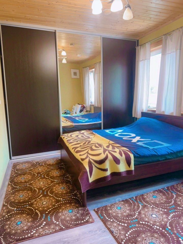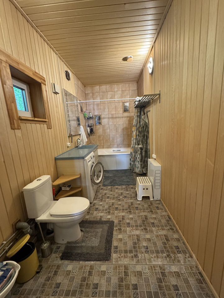 Арт. 114766239 Уникальный дом в пределах Санкт-Петербурга, в 2 км от КАД — место, где каждая деталь создавалась с большой любовью и контролировалась лично владельцами. Дом построен для себя, без компромиссов в качестве, в окружении вековых хвойных деревьев и охраняемой природной территории. Участок ИЖС 12 соток по документам, фактически около 16 соток, примыкает к Юнтоловской возвышенности — охраняемой природной территории, где никогда ничего не будет построено. Соседи только по бокам, фасадная часть значительно удалена от ближайших построек и отделена лесополосой. В доме 2 этажа, второй — мансардный (высота потолка в верхней точке — 5 м, в нижней — 2,3 м). Фундамент — железобетонная плита, кровля — из мягкой черепицы. Клееный брус северной костомукшинской сосны 215/270 мм использован не только в наружных стенах, но и во всех внутренних перегородках — великолепная плотность, геометрия и соответствующие тепло- и звукоизоляционные характеристики. Все материалы натуральные для полноценной гипоаллергенности дома, без единой крошки минеральной ваты. Вся мебель из массива сосны, палисандра, ореха — дизайнерская, частично антикварная и полностью отреставрированная. Всё остекление — деревянные стеклопакеты, полы — дубовый паркет, двери — массив дуба. Планировка включает огромную гостиную-столовую с высотой потолков 3,2 м и 7 м в зоне второго света. Сердце гостиной — финская печь Туликиви, которая держит тепло 36 часов с одной протопки и оборудована духовкой для приготовления томлёных блюд. Кухня с множеством мест для хранения, необходимой бытовой техникой, огромным мебельным островом с барными стульями и бесшумной вытяжкой с крышным вентилятором. На первом этаже также есть хамам, который нагревается за 15 минут до 50 градусов и создаёт густой горячий пар — не хуже русской парной. В доме четыре спальни: гостевая на первом этаже, две детские и большая мастер-спальня с гардеробной на втором этаже. На втором же этаже есть огромный санузел с ванной из искусственного камня. Также предусмотрены два технических помещения - котельная и постирочная. Всё инженерное и сантехнической оборудование использовано от лучших европейских производителей. Инженерные системы включают скрытую электропроводку внутри бруса без единой распредкоробки, тёплые полы по всему первому этажу, дизайнерские радиаторы, газовое отопление и горячее водоснабжение. Водоснабжение автономное (скважина). Вода с повышенным содержанием железа, поэтому оборудована система очистки и фильтрации. На участке летняя крытая барбекю-зона с мангалом и тандыром, хозяйственный блок и навес на два автомобиля. Территория ухожена: фруктовые и сортовые хвойные деревья, цветущие и плодовые кустарники. Звоните, чтобы узнать детали и договориться о просмотре!