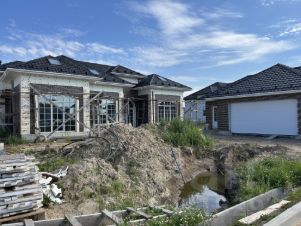 Коттедж в КП Петергофские дачи.Фото реальные,участок 202,тупиковый заезд,соседи уже есть со всех сторон.Дом одноэтажный плюс высокий мансардный этаж.В доме 6 спален,3 санузла,просторная гостиная с монолитной лестницей на второй этаж,много подсобных помещений,гардеробная,место под сауну.Сделана разводка теплого пола,разводка под сантехнику.Гараж на 2 автомобиля,с хозблоком.