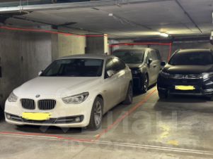 Семейное парковочное место на 2 автомобиля, 27,3м2. Два Крузака легко входят. Собственность. По факту места больше за счет пространства между колоннами и проходов к лифтам. Выходы к лифтам во двор и лифтам парадных 12, 13, 19 в пяти шагах от паркинга.
