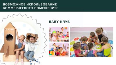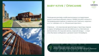 Продаётся коммерческое помещение под детский центр / развивающий клуб / студию для детей в Петродворцовом районе Санкт-Петербурга.Помещение расположено в отдельно стоящем 2-этажном здании на территории жилого комплекса бизнес-класса VEREN VILLAGE стрельна. Дом сдан, территория заселена.Характеристики:- Площадь — 300,5 м²- 2 этажа- Потолки 3,54 м- Большие окна, много света- Свободная планировка- Отдельный входПочему это выгодно:- Жилой комплекс с семьями и детьми — постоянный поток клиентов- Подходит под разные форматы: детский центр, baby-клуб, развивающие занятия, студии, кружки- Отдельное здание — удобно для родителей и безопасно для детей- В районе минимальная конкуренция- Востребованный формат бизнеса с устойчивым спросом- Можно открыть свой проект или сдавать в арендуЛокация:Петродворцовый район, СтрельнаУдобный выезд в город, спокойное и зелёное окружениеЗвоните — покажем помещение и ответим на все вопросы.