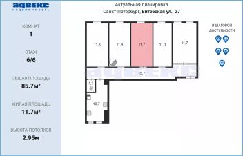 ID: 1787851Продается отличная комната без ремонта в малонаселенной квартире, в нескольких минутах пешком от метро Василеостровская. Комната правильной формы с двумя окнами, светлая и теплая, места общего пользования в хорошем состоянии. Один взрослый собственник.