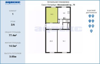 ID: 1787839Продаётся светлая, просторная комната в престижном сталинском доме.О доме:Тёплый, кирпичный дом 1955 года постройки.''Сталинки'' - одни из лучших домов своего времени, построенные с применением передовых технологий строительства и качественных материалов.В доме есть лифт. Идеальное местоположение - Московский проспект, между двумя станциями метро, до каждой из которых по 5-7 минут пешком. До остановки общественного транспорта и вовсе 1 минута.Рядом Парк Победы, Российская национальная библиотека, Московская площадь, ТЦ, рестораны и кафе.Во дворе детская и спортивная площадки, есть парковочные места.Район спокойный, тихий и зелёный.О комнате:Изолированная комната, площадью 17.8 м2,Высота потолков - 3,2 м2,Проводка заменена.Комната готова к проживанию. Выделена своя кухонная зона. Продаётся с мебелью и техникой. Хорошие, спокойные соседи.МОПы в нормальном состоянии. Есть график уборки, все чисто и аккуратно.По сделке:Прямая продажа, один собственник, без обременений. Уведомления соседям разосланы.Отвечу на все вопросы по данному объекту. Пишите, звоните.Если Вас интересуют вопросы, связанные с покупкой или продажей недвижимости, также обращайтесь.