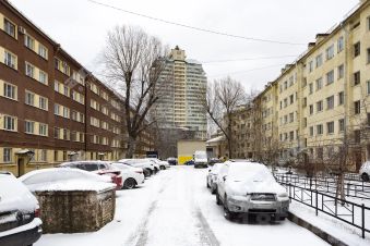 Комната 13.4 метров квадратных, прямоугольной формы, в 5-ти комнатной квартире, окно выходит во двор. Квартира двухсторонняя, второй дом от Большого проспекта ПС. Вход парадный, лестница парадная, установлен домофон.Дом 5-6+мансарда этажей. Окна квартиры выходят на улицу, Владимирский собор и во двор. Лифта нет. Кухня просторная, 12,7 м2, две газовые плиты, газовая колонка, также есть место для стиральной машины. К кухне прилегает комната 8 м2 МОП, имеется выход на чёрную лестницу. Высота помещения 3,23 метра. Квартира малонаселенная, 5 собственников. Рядом метро Спортивная, 5 минут пешком, развитая инфраструктура, сквер для прогулок, очень красивый Большой проспект, много магазинов и мест для культурного проведения досуга, спорт комплекс Юбилейный, Князь-Владимирский собор, строится красивая набережная и театр Якобсона. Комната и квартира требуют ремонта.
