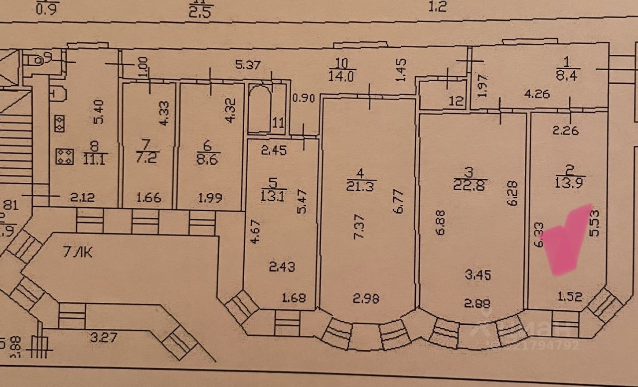 Продаётся просторная комната площадью 23,7 кв. м в 2-комнатной квартире на 2 этаже кирпичного дома 1958 года постройки. Общая площадь квартиры 66 кв.м, кухня 10,7 кв.м, прихожая 8,7 кв.м, раздельный санузел, высокие потолки 3.05 м.Дом расположен в центре Гатчины, на его главной улице проспекте 25го октября, имеет уютный двор с собственной парковкой для членов ТСЖ.Рядом расположен торговый комплекс, сетевые магазины, парк Орлова Роща, автобусные остановки и остальные элементы инфраструктуры.Комната в собственности 1 взрослого человека, прямая продажа.Звоните и договаривайтесь о просмотре!Арт. 73653421