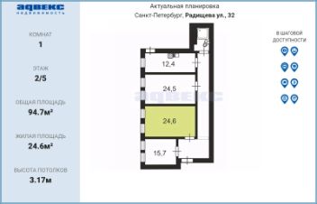 ID: 1787937Просторная светлая изолированная комната площадью 24,6 м2, с высокими потолками высотой 3.17м , в трехкомнатной квартире общей площадью 94,7 м2, на 2 этаже пятиэтажного кирпичного дома (перекрытия железобетонные). В шаговой доступности метро Чернышевская.Комната с двумя большими окнами во двор (стеклопакет). Толстые стены. Всегда тихо, тепло и уютно. Двор с закрытой территорией.Чистая парадная. Добрые и воспитанные соседи))У комнаты один взрослый собственник. Никаких долгов по коммунальным платежам, не банкрот. В квартире во второй комнате проживает одна соседка и третья комната принадлежит городу ( в ней никто не проживает). Возможен вариант выкупа, со временем, всей квартиры.В общественных местах чисто. Кухня 12 метров с окном во двор и черным ходом, который функционирует.Есть выделенное место на кухне, место под стиральную машинку и своя мойка.Комната приобретена по договору купли-продажи в 1999 году - срок владения более 25 лет.Без обременений. Полная сумма в договоре. На сделке собственник будет присутствовать лично. Заинтересовались? -звоните! Договоримся о просмотре.