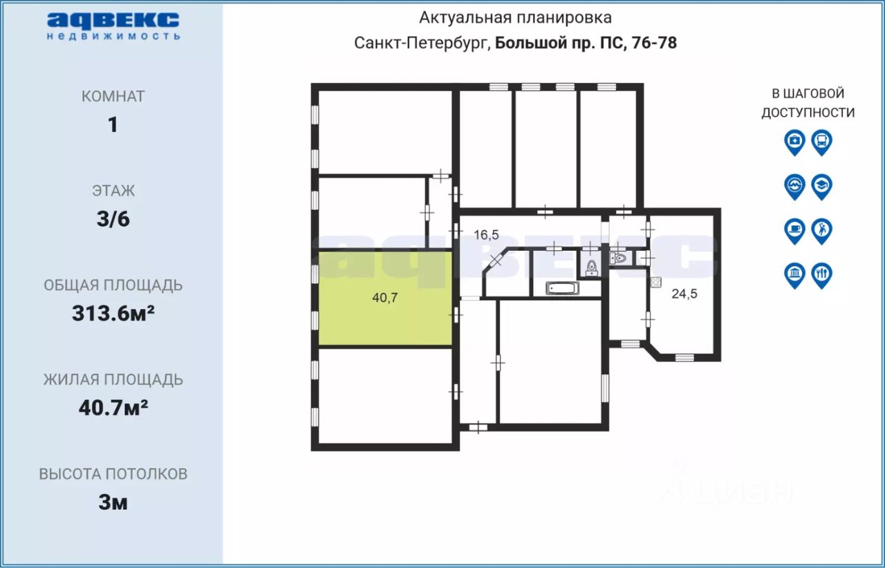 СМОТРИ,2 комнаты в самом сердце Петербурга, в историческом доме!Отказы ГОТОВЫ!Таких предложений в районе больше НЕТ!1 СОБСТВЕННИК!ПОЛНАЯ стоимость в договоре!Подходит для ипотеки!Более 5 лет в собственности!2 Раздельные комнаты с ремонтом и эргономичным зонированием!24,2 м.кв. и 12,3 м.кв.Высокие потолки 3,33 м!+ Расположены отдельным блоком и имеют СВОЮ отдельную дверь!+ Вы редко встретите соседей, их гостей. Будто живёте в абсолютно обычной однушке!+ Есть своя кухонная зона + Персональная стиральная машинка стоит на кухне+ Очень тепло и светло+ ПРОВЕРЕНО: никакой живности!В ПОДАРОК: полное юридическое сопровождение!О квартире:+ ВСЕ СОСЕДИ адекватные и дружелюбные, всего 4!+ Адекватная плата по квитанциям+ Ванна и 2 туалета+ Сверху технический этаж, а не просто крыша+ Есть возможность в дальнейшем выкупить остальные комнаты!О доме:+ Кирпич, 1908 г.п.+ Смешанный тип перекрытий+ Лифт в парадной, что редкость для старого фонда+ Чистая парадная с видеонаблюдением+ Свободная парковка рядом с домом + закрытый на шлагбаум двор+ Ни одного общепита в доме (нет запахов и вредителей) + Высокий рейтинг среди жильцовИнфраструктура:+ Детские площадки, детские сады, детская поликлиника, музыкальная школа рядом+ Скверы, зоны для прогулок, Церковь, спортивные комплексы, бассейн, торговые центры, отделения банков, аптеки, салоны красоты, рестораны, все службы доставок, почта+ До набережной Невы 10 мин пешком+ До Петропавловки и Зоопарка 20 минут пешком Транспортная доступность:+ До метро ''ЧКАЛОВСКАЯ'' (фиолетовая ветка) 7 мин пешком, а ''ПЕТРОГРАДСКАЯ'' (синяя ветка) 10 мин пешком + Остановки общественного транспорта рядом с домом!+ Центр города до 10 минут от дома!+ КАД 20 мин+ ЗСД 10 минНе откажи себе в роскоши жить не просто в доме, а там, где каждый метр дышит красивой историей! Это замечательное предложение ждёт именно тебя! Звони сейчас!*Фотографии соответствуют действительности и сделаны нашим агентом при личном визитеА ещё мы делаем это:- Антикризисное управление сделкой- Полное юридическое сопровождение- Подбор встречных покупок- Проведение сделок-цепочек любой длины- Бесплатная консультация по продаже- Договор обмена? Легко!- Юридическая проверка объектов/продавцовВся информация по телефону в объявлении!