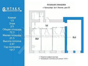 Вашему вниманию предлагается к продаже просторная комната 21.1m2 в трехкомнатной квартире с общей площадью 73.5m2. В квартире проживает одна соседка. Удобное месторасположение обеспечит вам легкий доступ ко всем важным объектам инфраструктуры. Рядом сетевые магазины, МФЦ, кафе, аптеки, спортивные, детские площадки. В шаговой доступности остановки общественного транспорта, детские сады, школы, что удобно и безопасно для ваших детей. В комнате никто не зарегистрирован. Прямая продажа. Один взрослый собственник. Звоните, покажем, расскажем.