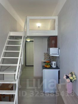 Комната, разделённая на 2 студии. Цена за обе студии (одну комнату)- цена за обе студии- площадь студии по стенам - примерно 13,5, второй ярус - ещё около 6 м2- покажем 2 студии за раз- вход сразу после входа в коридор- ниже - такие же студии- один взрослый собственник