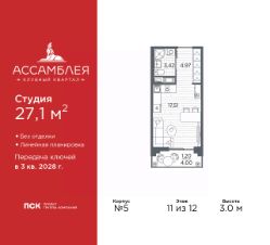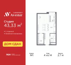 Однокомнатные апартаменты-студия от застройщика с отделкой в ЖК ''Ladozhsky AVENIR'' на 14 этаже. Общая площадь: 24.28 кв.м., площадь гостиной 20.23 кв.м., из которых 5 кв.м. выделено под кухонную зону. Все окна выходят на одну сторону. В апартаментах один совмещенный санузел. Высота потолков 2.7 м. Апартаменты находятся в корпусе 1. Дом монолитный, одноподъездный, высотой 14 этажей. На этаже 50 квартир. В подъезде 4 пассажирских и 4 грузовых лифта. В шаговой доступности от дома расположены станции метро (расстояние по прямой): ''Ладожская'' (800 м), ''Новочеркасская'' (1.7 км), также недалеко от этого корпуса находятся станции метро: ''Площадь Александра Невского'', ''Чернышевская'', ''Площадь Восстания''. Тест-драйв в готовых апартаментах. Перед покупкой можно арендовать номер для проживания с компенсацией от застройщика. Ladozhsky AVENIR — апартотель бизнескласса в историческом районе Матросская слобода на Правобережье Невы в 10 минутах пешком от станции метро ''Ладожская'' и 10 минутах на автомобиле до Невского проспекта.Апартотель Ladozhsky AVENIR — четвертый проект сети сервисных апартотелей AVENIR и первый мультиформатный проект, включающий в себя апартаменты, офисы и коммерческие помещения. Относится к высокому сегменту ''Бизнес - класс''Все апартаменты сдаются с отделкой ''под ключ'' в единой стилистике. Семейная ипотека на апартаменты не распространяется.Деятельность по сдаче апартаментов в аренду осуществляет управляющая компания PSK INVEST, входящая в группу компаний ''ПСК''.Для передачи апартамента в управление PSK IINVEST необходимо заключить договор на приобретение пакета ''Меблировка и оснащение''. #ZmbmaV