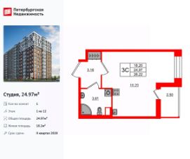 Продается уютная студия от застройщика в жилом комплексе ''Парадный ансамбль'' в престижном Московском районе.До метро можно добраться на транспорте всего за 20 минут.Удобная, классическая, функциональная европланировка, вместительная прихожая 3.09 м². Общая площадь студии - 21.42 м², жилая 15.05 м², высота потолка 2.77 м.Квартира продается с отделкой ''NORD LINE SILVER''.Что особенного в ЖК ''Парадный ансамбль''?• Инновационный Лицей Setl с оригинальной архитектурной концепцией и уникальной образовательной средой• Масштабное малоэтажное строительство в престижном Московском районе• Рекреационные зоны: парадный парк в центре квартала, ручей с собственной набережной, центральная площадь, ресторанный комплекс и пешеходный бульвар• Фасады из керамогранита и кирпича с яркими и акцентными входными группами• Две самые большие площадки Setl Kids и Setl Sport• Уникальные квартиры.High Flat на последних этажах, палисадники у квартир на первом этаже, семейные секции, квартиры с саунами и окном в ванной