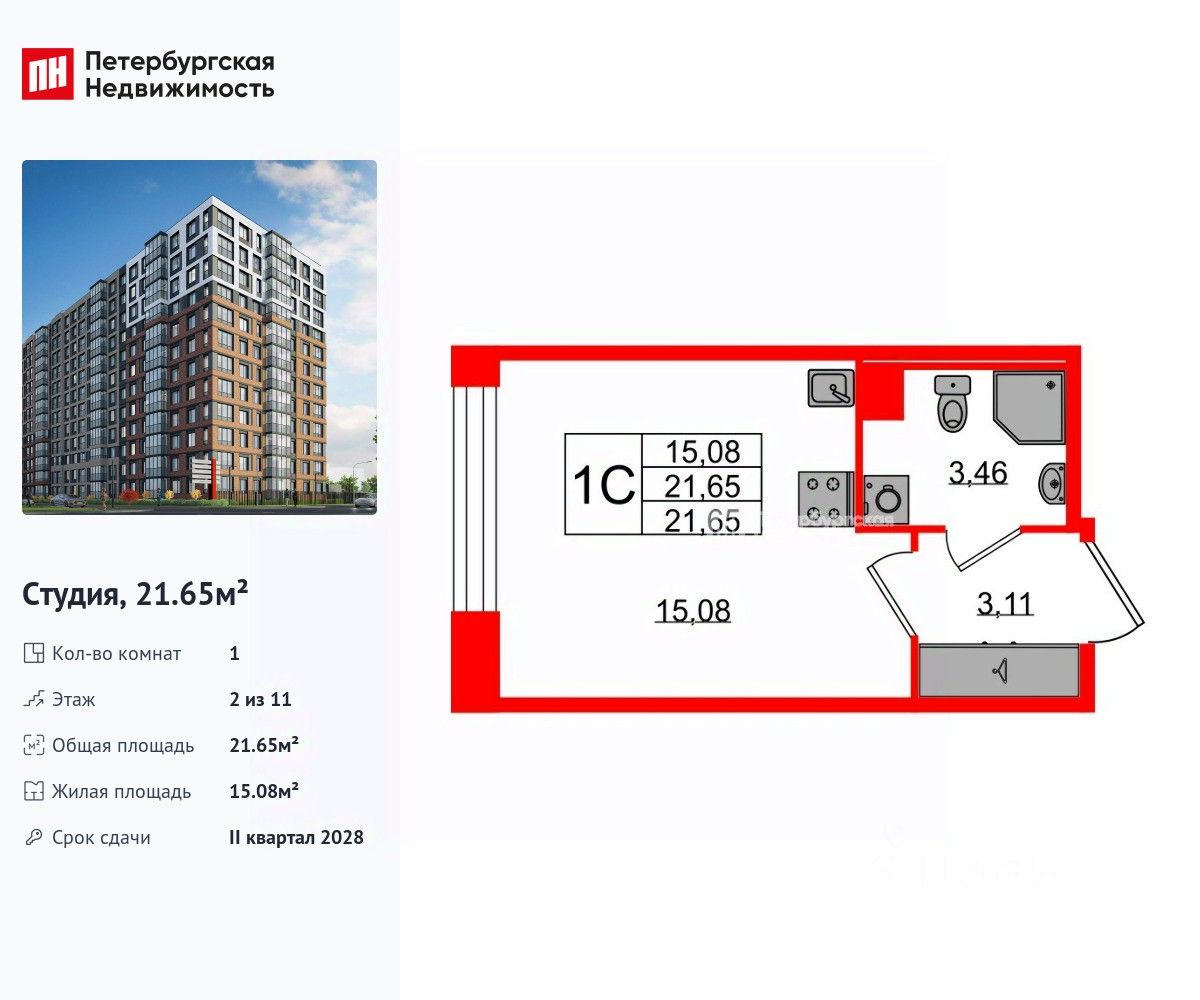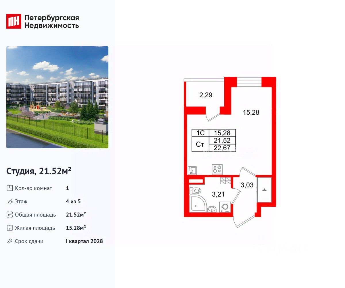 Продается уютная студия от застройщика в жилом комплексе ''Парадный ансамбль'' в престижном Московском районе. До метро можно добраться на транспорте всего за 20 минут. Удобная, классическая, функциональная европланировка, вместительная прихожая 3.03 м². Общая площадь студии - 21.52 м², жилая 15.28 м², высота потолка 2.77 м. Квартира продается с отделкой ''Норд Лайн серый''. Что особенного в ЖК ''Парадный ансамбль''? • Инновационный Лицей Setl с оригинальной архитектурной концепцией и уникальной образовательной средой • Масштабное малоэтажное строительство в престижном Московском районе • Рекреационные зоны: парадный парк в центре квартала, ручей с собственной набережной, центральная площадь, ресторанный комплекс и пешеходный бульвар • Фасады из керамогранита и кирпича с яркими и акцентными входными группами • Две самые большие площадки Setl Kids и Setl Sport • Уникальные квартиры.High Flat на последних этажах, палисадники у квартир на первом этаже, семейные секции, квартиры с саунами и окном в ванной