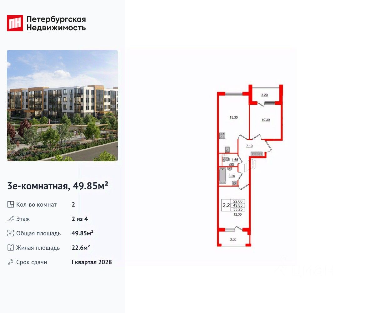 Продается уютная 2-комнатная квартира от застройщика в жилом комплексе ''Универ Сити'' в на юге Санкт-Петербурга. До метро можно добраться на транспорте всего за 30 минут. Удобная, классическая, функциональная европланировка, большая кухня-гостиная 15.3 м², вместительная прихожая 7.1 м². Общая площадь квартиры - 49.85 м², жилая 22.6 м², высота потолка 2.78 м. Квартира продается с отделкой ''Норд Лайн серый''. Что особенного в ЖК ''Универ Сити''? • Малоэтажное строительство • Скандинавские фасады с отделкой керамогранитом, акцентные входные группы • Закрытые внутренние дворы без машин • Пешеходный променад с тематическими зонами, еловый сквер и яблоневый сад • Univer Park, включая SetlSport и SetlKids, площадку для выгула собак и зоны отдыха • Инновационный Лицей Setl с оригинальной архитектурной концепцией и уникальной образовательной средой