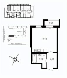 Просторная 1-комн. квартира-студия в Клубный квартал ''Ассамблея'' на 1 этаже. Квартира без отделки, полностью готова к ремонту. Общая площадь: 42.17 кв.м., площадь гостиной 31.6 кв.м., из которых 10 кв.м. выделено под кухонную зону. Все окна выходят на одну сторону. В квартире один совмещенный санузел. Высота потолков 3.0 м. Дом монолитный, черырехподъездный, высотой 12 этажей. Квартира находится в 4-й секции в корпусе 5. На этаже 10 квартир. В подъезде 1 пассажирский и 1 грузовой лифт. Окончание строительства - 3 квартал 2028 года. Оформление сделки по договору долевого участия. В шаговой доступности от жилого комплекса находятся станции метро (расстояние по прямой): ''Горный институт'' (1.0 км), ''Василеостровская'' (1.4 км), ''Приморская'' (1.5 км), также недалеко от этого корпуса находятся станции метро: ''Спортивная'', ''Чкаловская''. ''Клубный квартал Ассамблея'' — проект бизнес-класса на Васильевском острове, в самом сердце исторического Петербурга. Комплекс состоит из пяти корпусов переменной этажности — от 7 до 12 этажей — с выразительной архитектурой в стиле неомодернизма: светлый клинкер, панорамное остекление, просторное лобби с потолками высотой почти 8 метров. Потолки — до 3,2 метров. Подземный паркинг на 667 машиномест. Комфорт и инфраструктура Проект ориентирован на комфортную городскую жизнь. В закрытом дворе — ландшафтное озеленение, современные детские и спортивные площадки. Внутренний клуб для резидентов включает коворкинг, переговорные, кинозал, фитнес и бьюти-зону. IP-домофония с просмотром камер видеонаблюдения, дистанционное открывание дверей и доступа на территорию и в парадную со смартфона и планшета, просмотр показаний счетчиков, приложение для жителей PSK Home. Локация Расположение на Васильевском острове — сильная сторона проекта. До четырех станций метро (''Горный институт'', ''Василеостровская'', ''Спортивная'', ''Приморская'') — 515 минут пешком. В шаговой доступности — зелёные зоны, культурные учреждения, в том числе сад ''Василеостровец'' и ДК имени Кирова. Основные магистрали Большой, Средний и Малый проспекты, Наличная и Уральская улицы. Съезд на ЗСД расположен недалеко от станции метро ''Приморская'', близ береговой линии. Благовещенский и Дворцовый мосты соединяют остров с центром города, а мосты Тучков, Биржевой и Бетанкура — с Петроградской стороной. Застройщик Группа компаний ПСК является одной из ведущих девелоперских компаний Санкт Петербурга. На протяжении 18 лет она возводит в Северной столице качественное жилье премиум, бизнес и комфорт-класса, социальные объекты школы и детские сады, апарт-отели и торговые центры. Является шестикратным обладателем золотого знака ''Надежный застройщик России''. #ZMb9EO