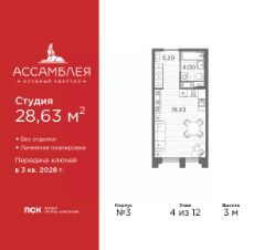 Объект забронирован клиентом!Продаётся квартира-студия площадью 24,8 кв.м на 6 этаже 9 этажного дома (Корпус 2.2, Секция 13) проекта ПИК Лермонтовский 54. Светлый просторный подъезд на уровне земли, функциональная планировка, большие окна, без отделки. ''Лермонтовский 54'' находится в центре Санкт-Петербурга на набережной Обводного канала, в 5 минутах пешком от метро ''Балтийская''. Здесь будут квартиры с окнами в пол, высокими потолками и террасами. Жилой квартал находится в центре Санкт-Петербурга, в Адмиралтейском районе, на набережной Обводного канала. В 5 минутах пешком - станция метро ''Балтийская''. До Невского проспекта на автомобиле ехать 8 минут, до Московского проспекта - всего 2 минуты. Необычные фасады ''Лермонтовского 54'' напоминают о промышленной архитектуре, которая была популярна в Санкт-Петербурге в конце XIX и начале XX века. Материал отделки - прочный кирпич, который прослужит до 100 лет. А благодаря системе чиллер-фанкойл на фасадах не будет блоков кондиционеров - всё охлаждение происходит внутри здания. В ''Лермонтовском'' возводятся дома высотой от 7 до 9 этажей с небольшим количеством квартир: на этаже может быть всего две квартиры. Во дворах будут закрытые парки с детскими площадками и местами для отдыха, а на подземном этаже - паркинг с удобной навигацией. Между домами протянется пешеходный бульвар для прогулок и отдыха, для велосипедистов предусмотрены специальные дорожки и парковки. В 2024 году в ''Лермонтовском 54'' открылся лицей на 1000 мест. Он разместился в здании 1824 года - раньше здесь было Николаевское кавалерийское училище. Во всех квартирах будут трёхметровые потолки и окна в пол. На первых этажах откроются магазины, кафе и другие сервисы. Со стороны набережной в домах, которые признаны объектами культурного наследия, мы разместим общественные пространства. Недалеко от ''Лермонтовского 54'' находится Юсуповский дворец, парк Екатерингоф, на машине можно доехать до острова Новая Голландия и Мариинского театра. Рядом работают школы, детские сады, торговые центры и гипермаркеты. Артикул 921685 (Застройщик ООО ''СПЕЦИАЛИЗИРОВАННЫЙ ЗАСТРОЙЩИК ''АЛЬМАНДИН'') [cn_sbp_1836389]
