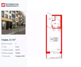 Продается просторная студия от застройщика в жилом комплексе ''Univer City'' в на юге Санкт-Петербурга.До метро можно добраться на транспорте всего за 30 минут.Удобная, классическая, функциональная европланировка, вместительная прихожая 3.13 м². Общая площадь студии - 25.03 м², жилая 18.02 м², высота потолка 2.77 м.Квартира продается с отделкой ''NORD LINE SILVER''.Что особенного в ЖК ''Univer City''?• Малоэтажное строительство• Скандинавские фасады с отделкой керамогранитом, акцентные входные группы• Закрытые внутренние дворы без машин• Пешеходный променад с тематическими зонами, еловый сквер и яблоневый сад• Univer Park, включая SetlSport и SetlKids, площадку для выгула собак и зоны отдыха• Инновационный Лицей Setl с оригинальной архитектурной концепцией и уникальной образовательной средой