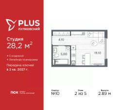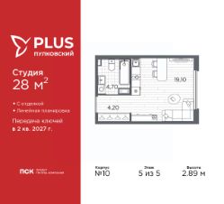 1-комн. квартира-студия с отделкой в ЖК ''PLUS Пулковский'' на 2 этаже. Общая площадь: 28.2 кв.м., площадь гостиной 19.1 кв.м., из которых 5 кв.м. выделено под кухонную зону. Все окна выходят на одну сторону. В квартире один совмещенный санузел. Высота потолков 2.89 м. Дом монолитный, трехподъездный, высотой 5 этажей. Квартира находится во 2-й секции в корпусе 10. На этаже 7 квартир. В подъезде 1 грузовой лифт. Окончание строительства - 2 квартал 2027 года. Оформление сделки по договору долевого участия. Уютный пятиэтажный city квартал PLUS Пулковский расположен в престижном Московском районе на пересечении Пулковского и Волхонского шоссе в новом формирующемся микрорайоне. Рядом проходит одна из важнейших транспортных артерий города Пулковское шоссе, а в 10 минутах езды два въезда на КАД и въезд на ЗСД. Благодаря удобному и быстрому выезду на Пулковское шоссе, можно легко добраться до центра города за 35 мин. До станций метро ''Московская'' и ''Купчино'' - 15 мин. на машине, а до аэропорта Пулково - 17 мин. В составе квартала: 30 пятиэтажных домов, школа со спортивным стадионом, 2 детских сада с бассейнами, наземные и подземные паркинги, центральный зеленый бульвар с play hub и местами отдыха. Благоустройство квартала продумано до мельчайших деталей, в его основе - забота о качестве жизни каждого жителя. Дома возводятся по современной монолитной технологии строительства с вентилируемыми фасадами. Благодаря большим увеличенным окнам и отсутствию высокоэтажных домов, во всех квартирах максимальный объем естественного света. В составе квартала запланированы социально-значимые объекты: школа на 825 мест со спортивным стадионом и бассейнами, два детских сада с бассейнами на 220 мест каждый. Территория квартала зонирована таким образом, чтобы автомобильные и пешеходные потоки и не пересекались. Прогулочные и велосипедные дорожки отделены от автомобильных проездов зелеными насаждениями. Дворы закрыты для машин, что дает чувство дополнительной безопасности для жителей особенно, для самых маленьких. Вся территория квартала безбарьерная. Здесь нет пандусов, резких перепадов высот или неудобных ступеней. Вход в парадные с уровня земли. В каждом дворе есть своя оборудованная детская площадка. А в центре микрорайона расположится большая игровая площадка play hub с пространством для командных игр. PLUS Пулковский располагается в молодом микрорайоне, который сейчас находится в стадии активного развития. Он будет обладать собственной развитой инфраструктурой. В радиусе 15 минут езды на автомобиле располагаются многочисленные магазины, супермаркеты, спортивные, образовательные и медицинские учреждения, парки и достопримечательности. Для автомашин предусмотрены отдельно стоящий 5-ти этажный паркинг на 958 машино-мест, две подземные парковки на 367 машино-мест и наземные парковочные зоны по внешнему периметру микрорайона. #26Bt0O
