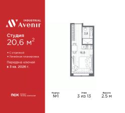 1-комн. апартаменты-студия с отделкой в ЖК ''Industrial AVENIR'' на 3 этаже. Общая площадь: 20.6 кв.м., площадь гостиной 16.8 кв.м., из которых 5 кв.м. выделено под кухонную зону. Все окна выходят на одну сторону. В апартаментах один совмещенный санузел. Высота потолков 2.5 м. Апартаменты находятся в корпусе 1. Дом монолитный, одноподъездный, высотой 13 этажей. На этаже 64 квартиры. В подъезде 3 пассажирских и 3 грузовых лифта. Окончание строительства - 3 квартал 2026 года. Оформление сделки по договору долевого участия. В шаговой доступности от дома расположены станции метро (расстояние по прямой): ''Кировский завод'' (300 м), ''Автово'' (1.6 км), также недалеко от этого корпуса находятся станции метро: ''Нарвская'', ''Ленинский Проспект'', ''Балтийская''. 13ти этажное здание апарт-отеля строится по монолитной технологии. В номерном фонде 739 апартаментов, в том числе юниты с террасами и в формате ''евро 2'', офисные и коммерческие помещения, оборудованный коворкинг, подземный паркинг. На первом этаже лобби 160 кв.м. с рецепшн, выставочным пространством, кафе и гостевой зоной. Окончание строительства апарт - отеля - III квартал 2026 года. Оформление сделки по договору долевого участия. Семейная ипотека на апартаменты не распространяется. ОТДЕЛКАВсе апартаменты сдаются с полной чистовой отделкой, выполненной в концептуальном индустриальном стиле. Стены оформлены обоями под покраску в сером оттенке. Одна из стен акцентная - с декоративной штукатуркой, имитирующей бетон. Элементы черного металла представлены в трековых светильниках, дверной фурнитуре и сантехнике. На полу уложен износоустойчивый ламинат с деревянной фактурой. Еще одним элементом индустриального стиля в отделке апартамента является крупноформатный керамогранит на полу и стенах санузла, имитирующий фактуру и цвет кортеновской стали.ЗD по шоу руму. РАСПОЛОЖЕНИЕ Апарт-отель Industrial Avenir строится в 300-х метрах от метро ''Кировский завод'' и ''Путиловская'' (открытие 2025 г) на центральной магистрали Кировского района проспекте Стачек. Близость развязок с ЗСД и КАД фактически снимает любые ограничения в осмотре пригородов и выбора направлений в личном туристическом плане на день.Предпосылкой для открытия пятого апарт-отеля сети Avenir - Industrial Avenir, стал высокий потенциал локации рядом с крупным производственным кластером, центральной магистралью Кировского района и шаговой доступностью от двух станций метро. Новый апарт-отель возводится рядом с первым апарт-отелем сети - Putilov Avenir, открытым в 2022 году. УПРАВЛЕНИЕ ДОХОДНОСТЬЮУправлением номерным фондом Industrial Avenir займется структура ГК ''ПСК'' PSK Invest, входящая в пятерку крупнейших управляющих компаний апарт-отелями в Санкт-Петербурге. Купить апартаменты в Industrial Avenir возможно сразу с управлением, заключив договор с УК PSK Invest и, тем самым, приобрести готовый арендный бизнес. Апартаменты недвижимое имущество, которое является вашей собственностью, и вы капитализируете свои вложения и получае