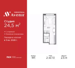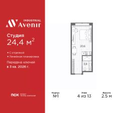 1-комн. апартаменты-студия от застройщика с отделкой в ЖК ''Industrial AVENIR'' на 2 этаже. Общая площадь: 23.5 кв.м., площадь гостиной 19.7 кв.м., из которых 5 кв.м. выделено под кухонную зону. Все окна выходят на одну сторону. В апартаментах один совмещенный санузел. Высота потолков 2.5 м. Апартаменты находятся в корпусе 1. Дом монолитный, одноподъездный, высотой 13 этажей. На этаже 64 квартиры. В подъезде 3 пассажирских и 3 грузовых лифта. Окончание строительства - 3 квартал 2026 года. Оформление сделки по договору долевого участия. В шаговой доступности от дома находятся станции метро (расстояние по прямой): ''Кировский завод'' (300 м), ''Автово'' (1.6 км), также недалеко от этого корпуса находятся станции метро: ''Нарвская'', ''Ленинский Проспект'', ''Балтийская''. 13ти этажное здание апарт-отеля строится по монолитной технологии. В номерном фонде 739 апартаментов, в том числе юниты с террасами и в формате ''евро 2'', офисные и коммерческие помещения, оборудованный коворкинг, подземный паркинг. На первом этаже лобби 160 кв.м. с рецепшн, выставочным пространством, кафе и гостевой зоной. Окончание строительства апарт - отеля - III квартал 2026 года. Оформление сделки по договору долевого участия. Семейная ипотека на апартаменты не распространяется. ОТДЕЛКАВсе апартаменты сдаются с полной чистовой отделкой, выполненной в концептуальном индустриальном стиле. Стены оформлены обоями под покраску в сером оттенке. Одна из стен акцентная - с декоративной штукатуркой, имитирующей бетон. Элементы черного металла представлены в трековых светильниках, дверной фурнитуре и сантехнике. На полу уложен износоустойчивый ламинат с деревянной фактурой. Еще одним элементом индустриального стиля в отделке апартамента является крупноформатный керамогранит на полу и стенах санузла, имитирующий фактуру и цвет кортеновской стали.ЗD по шоу руму. РАСПОЛОЖЕНИЕ Апарт-отель Industrial Avenir строится в 300-х метрах от метро ''Кировский завод'' и ''Путиловская'' (открытие 2025 г) на центральной магистрали Кировского района проспекте Стачек. Близость развязок с ЗСД и КАД фактически снимает любые ограничения в осмотре пригородов и выбора направлений в личном туристическом плане на день.Предпосылкой для открытия пятого апарт-отеля сети Avenir - Industrial Avenir, стал высокий потенциал локации рядом с крупным производственным кластером, центральной магистралью Кировского района и шаговой доступностью от двух станций метро. Новый апарт-отель возводится рядом с первым апарт-отелем сети - Putilov Avenir, открытым в 2022 году. УПРАВЛЕНИЕ ДОХОДНОСТЬЮУправлением номерным фондом Industrial Avenir займется структура ГК ''ПСК'' PSK Invest, входящая в пятерку крупнейших управляющих компаний апарт-отелями в Санкт-Петербурге. Купить апартаменты в Industrial Avenir возможно сразу с управлением, заключив договор с УК PSK Invest и, тем самым, приобрести готовый арендный бизнес. Апартаменты недвижимое имущество, которое является вашей собственностью, и вы капитализируете свои вложе