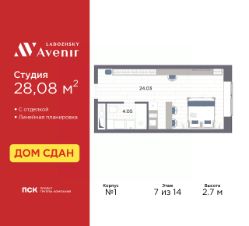 Просторные 1-комн. апартаменты-студия с отделкой в ЖК ''Ladozhsky AVENIR'' на 3 этаже. Общая площадь: 27.16 кв.м., площадь гостиной 23.11 кв.м., из которых 5 кв.м. выделено под кухонную зону. Все окна выходят на одну сторону. В апартаментах один совмещенный санузел. Высота потолков 2.7 м. Апартаменты находятся в корпусе 1. Дом монолитный, одноподъездный, высотой 14 этажей. На этаже 50 квартир. В подъезде 4 пассажирских и 4 грузовых лифта. В шаговой доступности от дома имеются станции метро (расстояние по прямой): ''Ладожская'' (800 м), ''Новочеркасская'' (1.7 км), также недалеко от этого корпуса расположены станции метро: ''Площадь Александра Невского'', ''Чернышевская'', ''Площадь Восстания''. Тест-драйв в готовых апартаментах. Перед покупкой можно арендовать номер для проживания с компенсацией от застройщика. Ladozhsky AVENIR — апартотель бизнескласса в историческом районе Матросская слобода на Правобережье Невы в 10 минутах пешком от станции метро ''Ладожская'' и 10 минутах на автомобиле до Невского проспекта.Апартотель Ladozhsky AVENIR — четвертый проект сети сервисных апартотелей AVENIR и первый мультиформатный проект, включающий в себя апартаменты, офисы и коммерческие помещения. Относится к высокому сегменту ''Бизнес - класс''Все апартаменты сдаются с отделкой ''под ключ'' в единой стилистике. Семейная ипотека на апартаменты не распространяется.Деятельность по сдаче апартаментов в аренду осуществляет управляющая компания PSK INVEST, входящая в группу компаний ''ПСК''.Для передачи апартамента в управление PSK IINVEST необходимо заключить договор на приобретение пакета ''Меблировка и оснащение''. #zmbmO1