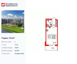 Продается просторная студия от застройщика в жилом комплексе ''Парадный ансамбль'' в престижном Московском районе.До метро можно добраться на транспорте всего за 20 минут.Удобная, классическая, функциональная европланировка, вместительная прихожая 3.02 м². Общая площадь студии - 24.42 м², жилая 18.27 м², высота потолка 2.77 м.Квартира продается с отделкой ''NORD LINE SILVER''.Что особенного в ЖК ''Парадный ансамбль''?• Инновационный Лицей Setl с оригинальной архитектурной концепцией и уникальной образовательной средой• Масштабное малоэтажное строительство в престижном Московском районе• Рекреационные зоны: парадный парк в центре квартала, ручей с собственной набережной, центральная площадь, ресторанный комплекс и пешеходный бульвар• Фасады из керамогранита и кирпича с яркими и акцентными входными группами• Две самые большие площадки Setl Kids и Setl Sport• Уникальные квартиры.High Flat на последних этажах, палисадники у квартир на первом этаже, семейные секции, квартиры с саунами и окном в ванной