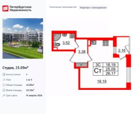 Однокомнатные апартаменты-студия с отделкой в ЖК ''Ladozhsky AVENIR'' на 3 этаже. Общая площадь: 24.21 кв.м., площадь гостиной 21.49 кв.м., из которых 5 кв.м. выделено под кухонную зону. Все окна выходят на одну сторону. В апартаментах один совмещенный санузел. Высота потолков 2.7 м. Апартаменты находятся в корпусе 1. Дом монолитный, одноподъездный, высотой 14 этажей. На этаже 50 квартир. В подъезде 4 пассажирских и 4 грузовых лифта. В шаговой доступности от дома находятся станции метро (расстояние по прямой): ''Ладожская'' (800 м), ''Новочеркасская'' (1.7 км), также недалеко от этого корпуса находятся станции метро: ''Площадь Александра Невского'', ''Чернышевская'', ''Площадь Восстания''. Тест-драйв в готовых апартаментах. Перед покупкой можно арендовать номер для проживания с компенсацией от застройщика. Ladozhsky AVENIR — апартотель бизнескласса в историческом районе Матросская слобода на Правобережье Невы в 10 минутах пешком от станции метро ''Ладожская'' и 10 минутах на автомобиле до Невского проспекта.Апартотель Ladozhsky AVENIR — четвертый проект сети сервисных апартотелей AVENIR и первый мультиформатный проект, включающий в себя апартаменты, офисы и коммерческие помещения. Относится к высокому сегменту ''Бизнес - класс''Все апартаменты сдаются с отделкой ''под ключ'' в единой стилистике. Семейная ипотека на апартаменты не распространяется.Деятельность по сдаче апартаментов в аренду осуществляет управляющая компания PSK INVEST, входящая в группу компаний ''ПСК''.Для передачи апартамента в управление PSK IINVEST необходимо заключить договор на приобретение пакета ''Меблировка и оснащение''. #2mBmoA