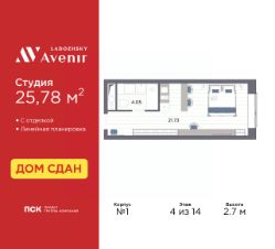 Продаются однокомнатные апартаменты-студия с отделкой в ЖК ''Ladozhsky AVENIR'' на 6 этаже. Общая площадь: 28.08 кв.м., площадь гостиной 24.03 кв.м., из которых 5 кв.м. выделено под кухонную зону. Все окна выходят на одну сторону. В апартаментах один совмещенный санузел. Высота потолков 2.7 м. Апартаменты находятся в корпусе 1. Дом монолитный, одноподъездный, высотой 14 этажей. На этаже 50 квартир. В подъезде 4 пассажирских и 4 грузовых лифта. В шаговой доступности от дома имеются станции метро (расстояние по прямой): ''Ладожская'' (800 м), ''Новочеркасская'' (1.7 км), также недалеко от этого корпуса расположены станции метро: ''Площадь Александра Невского'', ''Чернышевская'', ''Площадь Восстания''. Тест-драйв в готовых апартаментах. Перед покупкой можно арендовать номер для проживания с компенсацией от застройщика. Ladozhsky AVENIR — апартотель бизнескласса в историческом районе Матросская слобода на Правобережье Невы в 10 минутах пешком от станции метро ''Ладожская'' и 10 минутах на автомобиле до Невского проспекта.Апартотель Ladozhsky AVENIR — четвертый проект сети сервисных апартотелей AVENIR и первый мультиформатный проект, включающий в себя апартаменты, офисы и коммерческие помещения. Относится к высокому сегменту ''Бизнес - класс''Все апартаменты сдаются с отделкой ''под ключ'' в единой стилистике. Семейная ипотека на апартаменты не распространяется.Деятельность по сдаче апартаментов в аренду осуществляет управляющая компания PSK INVEST, входящая в группу компаний ''ПСК''.Для передачи апартамента в управление PSK IINVEST необходимо заключить договор на приобретение пакета ''Меблировка и оснащение''. #2mbWBS