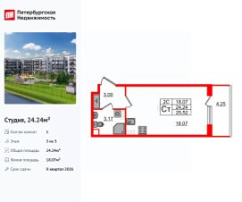 Номер объявления: 19889 - назовите его оператору. Продаётся уютная студия на 1 этаже в современном ЖК ''Чистое небо''.Идеальный вариант для первой собственной квартиры или инвестиции. Общая информацияПлощадь: Общая — 24.6 м2, жилая — 17.8 м2 + просторная лоджия 5.18 м2.Дом: Монолитно-кирпичный, сдан в 2022 году. Ваша квартира на 1 этаже из 24.Состояние: Качественный евроремонт, готова к заезду. Вся мебель и техника остаются — берите чемоданы и заселяйтесь!Преимущества ПЕРВОГО ЭТАЖАНикакого лифта и ожидания! Попадайте домой буквально за минуту. Идеально для владельцев собак, семей с колясками, велосипедистов и тех, кто ценит свое время.Своя приватность. Окна выходят в сторону, где нет интенсивного пешеходного трафика.Удобно для приёма гостей и заезда на коляске или велосипеде.Безопасность и комфорт в домеКруглосуточное видеонаблюдение на этажах и по периметру. Закрытая, охраняемая территория.Чистые и светлые парадные. Современные лифты (2 пассажирских, 1 грузовой), но вам они не понадобятся!Ухоженный закрытый двор без машин, детские и спортивные площадки.Транспортная доступностьОстановка общественного транспорта не далеко от дома.Всего 30 минут на маршрутке/автобусе до метро ''Комендантский проспект''.Отличная автомобильная доступность: рядом выезды на ЗСД и КАД.Инфраструктура и экологияВ шаговой доступности: супермаркеты (''Перекрёсток'', ''Лента''), аптеки, кафе, банки.Детские сады и школы в пешей доступности.Рядом — парк ''Город мастеров'' и Юнтоловский заказник. Свежий воздух, прогулочные аллеи и спортивные зоны прямо у вашего дома.Условия продажи Прямая продажа. 1 собственник (более 5 лет), все документы в порядке.НИКАКИХ обременений, долгов по ЖКХ нет.Материнский капитал не использовался.Полная сумма в договоре. Быстрый выход на сделку.Почему стоит брать эту квартиру?Вам не нужно делать ремонт и тратить еще полгода жизни — всё уже готово.Не нужно покупать мебель и технику — здесь уже есть всё для жизни.Уникальное предложение на 1 этаже — идеально для тех, кто не хочет ждать лифт.Полная юридическая чистота и быстрая сделка.Готовы посмотреть вашу будущую квартиру? Напишите или позвоните мне, чтобы договориться о просмотре в удобное время!
