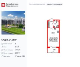 Продается просторная студия от застройщика в жилом комплексе ''Парадный ансамбль'' в престижном Московском районе.До метро можно добраться на транспорте всего за 20 минут.Уникальная, функциональная европланировка, просторная прихожая 3.36 м². Общая площадь студии - 24.98 м², жилая 18.37 м², высота потолка 2.77 м.Квартира продается с отделкой ''Норд Лайн светлый''.Что особенного в ЖК ''Парадный ансамбль''?• Инновационный Лицей Setl с оригинальной архитектурной концепцией и уникальной образовательной средой• Масштабное малоэтажное строительство в престижном Московском районе• Рекреационные зоны: парадный парк в центре квартала, ручей с собственной набережной, центральная площадь, ресторанный комплекс и пешеходный бульвар• Фасады из керамогранита и кирпича с яркими и акцентными входными группами• Две самые большие площадки Setl Kids и Setl Sport• Уникальные квартиры.High Flat на последних этажах, палисадники у квартир на первом этаже, семейные секции, квартиры с саунами и окном в ванной
