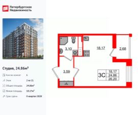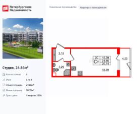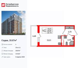 Продается уютная студия от застройщика в жилом комплексе ''Астра Континенталь'' в активно развивающимся Невском районе.До метро можно добраться пешком всего за 5 минут.Удобная, классическая, функциональная европланировка, вместительная прихожая 2.7 м². Общая площадь студии - 20.87 м², жилая 15.01 м², высота потолка 2.77 м.Квартира продается с отделкой ''Норд Лайн серый плюс''.Что особенного в ЖК ''Астра Континенталь''?• Уникальная локация 400 метров до метро, 300 метров до благоустроенной набережной• Самодостаточный квартал со всей инфраструктурой в 3-х км от центра• Впечатляющий объем благоустройства: 30 000 кв. метров рекреационных зон с променадом и гейзерными фонтанами• Масштабный парк ''Город Спорта''