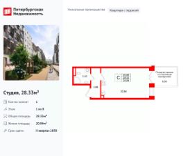 Продается просторная студия от застройщика в жилом комплексе ''Аристократ'' в уютном Василеостровском районе.До метро можно добраться пешком всего за 10 минут.Открытая терраса! Завтракайте или занимайтесь спортом на свежем воздухе!Уникальная, функциональная европланировка, просторная прихожая 3.96 м². Общая площадь студии - 28.33 м², жилая 20.84 м², высота потолка 3.02 м.Квартира продается с отделкой ''NORD LINE BUSINESS''.Что особенного в ЖК ''Аристократ''?• Васильевский остров - историческая локация с современными культурными кластерами• Индивидуальный облик каждого корпуса в единой архитектурной концепции• 7 парадных лобби с потолками до 7-ми метров• Цветущие сады, зеленые гостиные, фонтаны• Клуб резидентов ''Аристократ'': фитнес-клуб, коворкинг, гостиная с роялем, детский центр с кинотеатром• Технологичная среда на территории, в доме и в квартире• Премиальная отделка квартир - Nord line business