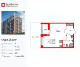 Продается уютная студия от застройщика в жилом комплексе ''Астра Континенталь'' в активно развивающимся Невском районе.До метро можно добраться пешком всего за 5 минут.Удобная, классическая, функциональная европланировка, вместительная прихожая 3.16 м². Общая площадь студии - 24.26 м², жилая 18.05 м², высота потолка 2.77 м.Квартира продается с отделкой ''NORD LINE SILVER ВК NEW''.Что особенного в ЖК ''Астра Континенталь''?• Уникальная локация 400 метров до метро, 300 метров до благоустроенной набережной• Самодостаточный квартал со всей инфраструктурой в 3-х км от центра• Впечатляющий объем благоустройства: 30 000 кв. метров рекреационных зон с променадом и гейзерными фонтанами• Масштабный парк ''Город Спорта''