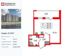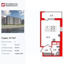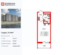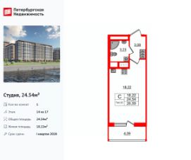 Цена со скидкой до 30% в прямой продаже от застройщика — только в этом месяце. При покупке апартаментов - паркинг за полцены. На все апартаменты действует беспроцентная рассрочка. Купите на распродаже! Покупка недвижимости в Zoom на Неве сейчас со скидкой до 30% позволит через 2 года получить доход до 6 300 000 руб. Роскошные виды на Неву. Апартамент-студия в комплексе класса бизнес-лайт Zoom на Неве на 8-м этаже. Общая площадь 27,14. Чистовая отделка.Zoom на Неве расположен в новом месте силы рядом с центром города на первой линии Октябрьской набережной в Невском районе, всего в 7 км от исторической части Санкт-Петербурга. Большой выбор эргономичных и максимально продуманных планировок позволит каждому найти вариант по душе. Панорамные виды на Неву, благоустроенные дворы, детская игровая комната, подземный паркинг, коммерческие зоны на первом этаже, это и многое другое делает Zoom на Неве идеальным местом для жизни. Особенности:- Панорамные виды на Неву и город,- 10 мин. до Парка Строителей, 15 мин. до Лондон-молла, Ленты, Максидома, 15 мин. до метро ''ул. Дыбенко'', 12 мин. до КАД, 10 мин. до центра,- Единая архитектурная концепция. Сдержанные и монументальные фасады в неоклассическом стиле,- Парадный лобби для жильцов. Единый вход в комплекс с администратором, зоной ресепшн и охраной, зоной для бесконтактной доставки посылок и еды,- Подземный отапливаемый паркинг с доступом из парадной,- Доступно 3 варианта отделки на выбор: черновая, предчистовая (White Box) и чистовая,- Зоны отдыха для взрослых и детей, Wi-Fi-покрытие во дворе и в паркинге, зоны для питомцев, арт-объекты и много другое. В шаговой доступности вся необходимая инфраструктура от детских садов и школ до супермаркетов и салонов красоты,- Все происходящее контролируется видеокамерами, а покой внутренней территории и безопасность ваших детей гарантируется полным отсутствием транспорта во дворах в концепции ''без машин''.
