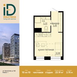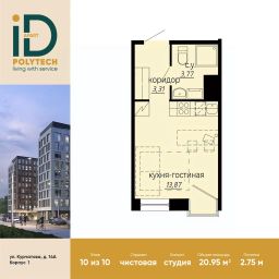 В продаже стильная эргономичная студия с готовой отделкой в эксклюзивном апарт-комплексе iD Polytech. 10-этажный дом расположен в шаговой доступности от станции метро ''Политехническая'' и престижного научно-образовательного кластера Политехнического университета Петра Великого. Дорога до Петроградской стороны с ее ресторанами, барами и креативными пространствами, как и до исторического центра, займет не больше 20 минут. Удобные выезды на ЗСД и КАД позволят свободно и быстро доехать до крупнейших моллов, аэропорта и живописного пригорода - Пушкино, Петергофа, Кронштадт, Зеленогорск. iD Polytech - идеальный вариант как для постоянного проживания, так и для временного размещения и сдачи в аренду туристам. Дом сдан.