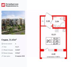 Продается уютная студия от застройщика в жилом комплексе ''Univer City'' в на юге Санкт-Петербурга.До метро можно добраться на транспорте всего за 30 минут.Удобная, классическая, функциональная европланировка, вместительная прихожая 3 м². Общая площадь студии - 21.65 м², жилая 15.01 м², высота потолка 2.77 м.Квартира продается с отделкой ''Норд Лайн светлый''.Что особенного в ЖК ''Univer City''?• Малоэтажное строительство• Скандинавские фасады с отделкой керамогранитом, акцентные входные группы• Закрытые внутренние дворы без машин• Пешеходный променад с тематическими зонами, еловый сквер и яблоневый сад• Univer Park, включая SetlSport и SetlKids, площадку для выгула собак и зоны отдыха• Инновационный Лицей Setl с оригинальной архитектурной концепцией и уникальной образовательной средой
