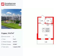 Продается просторная студия от застройщика в жилом комплексе ''Парадный ансамбль'' в престижном Московском районе.До метро можно добраться на транспорте всего за 20 минут.Удобная, классическая, функциональная европланировка, просторная прихожая 3.3 м². Общая площадь студии - 24.67 м², жилая 18.08 м², высота потолка 3.07 м.Квартира продается с отделкой ''NORD LINE WHITE''.Что особенного в ЖК ''Парадный ансамбль''?• Инновационный Лицей Setl с оригинальной архитектурной концепцией и уникальной образовательной средой• Масштабное малоэтажное строительство в престижном Московском районе• Рекреационные зоны: парадный парк в центре квартала, ручей с собственной набережной, центральная площадь, ресторанный комплекс и пешеходный бульвар• Фасады из керамогранита и кирпича с яркими и акцентными входными группами• Две самые большие площадки Setl Kids и Setl Sport• Уникальные квартиры.High Flat на последних этажах, палисадники у квартир на первом этаже, семейные секции, квартиры с саунами и окном в ванной