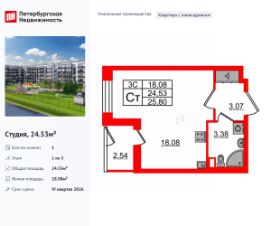 Продается уютная студия от застройщика в жилом комплексе ''Парадный ансамбль'' в престижном Московском районе.До метро можно добраться на транспорте всего за 20 минут.Удобная, классическая, функциональная европланировка, вместительная прихожая 3.11 м². Общая площадь студии - 24.35 м², жилая 18.18 м², высота потолка 3.07 м.Квартира продается с отделкой ''NORD LINE WHITE''.Что особенного в ЖК ''Парадный ансамбль''?• Инновационный Лицей Setl с оригинальной архитектурной концепцией и уникальной образовательной средой• Масштабное малоэтажное строительство в престижном Московском районе• Рекреационные зоны: парадный парк в центре квартала, ручей с собственной набережной, центральная площадь, ресторанный комплекс и пешеходный бульвар• Фасады из керамогранита и кирпича с яркими и акцентными входными группами• Две самые большие площадки Setl Kids и Setl Sport• Уникальные квартиры.High Flat на последних этажах, палисадники у квартир на первом этаже, семейные секции, квартиры с саунами и окном в ванной