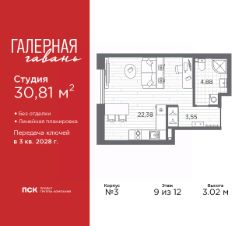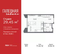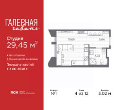 Продается однокомнатная квартира-студия в ЖК ''Галерная гавань'' на 4 этаже. Квартира без отделки, новый собственник может сделать ремонт по индивидуальному проекту. Общая площадь: 29.45 кв.м., площадь гостиной 19.09 кв.м., из которых 5 кв.м. выделено под кухонную зону. Все окна выходят на одну сторону. В квартире один совмещенный санузел. Высота потолков 3.02 м. Дом монолитный, трехподъездный, высотой 12 этажей. Квартира находится в 1-й секции в корпусе 1. На этаже 7 квартир. В подъезде 1 пассажирский и 1 грузовой лифт. Начало строительства - 4 квартал 2025 года. Окончание строительства - 3 квартал 2028 года. Оформление сделки по договору долевого участия. В шаговой доступности от дома находится станция метро (расстояние по прямой) ''Приморская'' (1.6 км), также недалеко от этого корпуса расположены станции метро: ''Горный институт'', ''Василеостровская'', ''Спортивная'', ''Крестовский остров''. ''Галерная гавань'' — это жилой комплекс бизнес-класса в исторической части Васильевского острова — на берегу Галерной гавани, ведущей свою историю с 1724 года.В свою очередь, исторический Васильевский остров это университеты, школы, детские сады, поликлиники, несколько станций метро и прочая инфраструктура без проблем с транспортной доступностью. В ''Галерной гавани'' шесть корпусов на 813 квартир, площадью от 29,5 до 134 кв.м. Высота потолков 3 м. Два корпуса из шести всего на 20 квартир. На верхних этажах расположатся квартиры с большими террасами и панорамным остеклением. Также есть квартиры с французскими балконами и мастер-спальнями. Четыре квартиры из каждых пяти с видами из окон на тихую воду, на старые и новые городские символы. Паркинг займет весь подземный объем квартала, и будет вмещать 606 автомобилей. Фасады ''Галерной гавани'' выполняются в стиле баварской кирпичной кладки, с акцентами из керамогранита графитового оттенка. Объемы задаются ризалитами с художественной подсветкой. Для жителей будет создан комьюнити-клуб с переговорной и библиотекой, кинозалом, кофе-поинтом, детской комнатой с пространством для мастер-классов, фитнес-зоной, а также бьюти-кабинетом. ''Галерная гавань'' — это также первый в Петербурге жилой комплекс с общественным пространством у воды. ГК ''ПСК'' восстановит десять исторических зданий, в которых расположатся рестораны, кафе, фитнес-клуб с бассейном, культурное пространство, театр и офисы. При этом набережная будет превращена в пешеходную, в территорию общественного пространства. #26ba0f