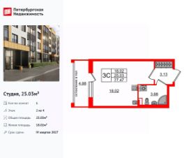 Продается просторная студия от застройщика в жилом комплексе ''Univer City'' в на юге Санкт-Петербурга.До метро можно добраться на транспорте всего за 30 минут.Удобная, классическая, функциональная европланировка, вместительная прихожая 3.13 м². Общая площадь студии - 25.03 м², жилая 18.02 м², высота потолка 2.77 м.Квартира продается с отделкой ''NORD LINE SILVER''.Что особенного в ЖК ''Univer City''?• Малоэтажное строительство• Скандинавские фасады с отделкой керамогранитом, акцентные входные группы• Закрытые внутренние дворы без машин• Пешеходный променад с тематическими зонами, еловый сквер и яблоневый сад• Univer Park, включая SetlSport и SetlKids, площадку для выгула собак и зоны отдыха• Инновационный Лицей Setl с оригинальной архитектурной концепцией и уникальной образовательной средой