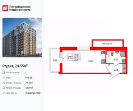Продается просторная студия от застройщика в жилом комплексе ''Астра Континенталь'' в активно развивающимся Невском районе.До метро можно добраться пешком всего за 5 минут.Удобная, классическая, функциональная европланировка, просторная прихожая 3.34 м². Общая площадь студии - 24.91 м², жилая 18 м², высота потолка 3 м.Квартира продается с отделкой ''NORD LINE WHITE ВК NEW''.Что особенного в ЖК ''Астра Континенталь''?• Уникальная локация 400 метров до метро, 300 метров до благоустроенной набережной• Самодостаточный квартал со всей инфраструктурой в 3-х км от центра• Впечатляющий объем благоустройства: 30 000 кв. метров рекреационных зон с променадом и гейзерными фонтанами• Масштабный парк ''Город Спорта''