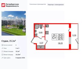 Продается апартамент-студия на 12-м этаже в сданном Апарт-комплексе бизнес-класса ''GloraX Заневский''. Ключи сразу! Общая площадь лота составляет 38,97 кв. м, из которых 35,64 кв. м отведено под жилую. Номер апартамента - 1 214.Преимущества:- Полная чистовая отделка- Возможность покупки меблировка и техника- Вход по ключ-карте- Прачечная на 1 этаже- Возможность дозаказа отельного сервиса- Программы доходности - Летний бар и променад- Воркаут площадка- Pet-friendlyАпартаменты ''GloraX Заневский'' - проект бизнес-класса с развитой инфраструктурой, удовлетворяющей все потребности самых взыскательных гостей. Располагается в одном из наиболее перспективных, районов Петербурга в 2х минутах от метро ''Ладожская'' и в 10 минутах от Невского проспекта.В ''GloraX Заневский'' есть все, что необходимо для комфортной жизни, работы и отдыха. Инфраструктура, покрывающая все потребности и ожидания собственников и арендаторов. В радиусе 150 метров находятся супермаркеты с возможностью доставки продуктов прямо до дверей апартаментов.На 1000 кв. м. общественных пространств расположится уютный лобби-бар, ресторан мировой кухни на 80 человек и оборудованные коворкинги.В апартаментах ''GloraX Заневский'' выполнена современная отделка с использованием высококачественных экологичных материалов. В проекте предусмотрен подземный отапливаемый паркинг на 100 мест, куда можно спуститься на лифте прямо от дверей апартаментов.Узнайте подробности в Отделе продаж.