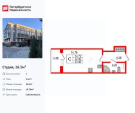 Продаются просторные студия в жилом комплексе ''Берег. Курортный'' в Курортном районе. До метро можно добраться на транспорте всего за 25 минут. Удобная, классическая, функциональная европланировка, просторная прихожая 4.38 м². Общая площадь апартаментов - 26.5 м², жилая 14.76 м², высота потолка 2.64 м. Квартира продается c черновой отделкой. Что особенного в ЖК ''Берег. Курортный''? • Уникальное расположение в окружении заповедных зон, напротив парка Дубки, на 1 линии канала. • Свой выход к набережной и пляжу • Вход в апартаменты организован через Центральное лобби площадью 250 метров с каминной комнатой. • На первых этажах расположены квартиры с личными террасами • Закрытая забором территория комплекса