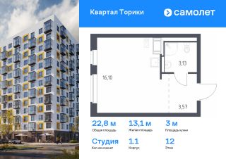 Продается квартира-студия. Квартира расположена на 9 этаже 13 этажного монолитно-кирпичного дома (Корпус 1.1, Секция 1) в ЖК ''Квартал Торики'' от группы ''Самолет''. Жилой комплекс ''Квартал Торики'' — комфортное место для семьи. Из окон открывается голубое небо, а все необходимое находится рядом. До центра Санкт-Петербурга — 40 минут на авто, до метро ''Проспект Ветеранов'' — 20 минут, рядом три автобусные остановки.Всего 1520 минут пешком до Гореловского озера для прогулок и пикников. Полежаевский и Южно-Приморский парки подходят для выгула собак, а набережная канала реки Дудергофки — для велосипедных прогулок.В квартале откроются школа на 525 мест и 2 детских сада на 160 и 180 мест. Утро можно начать в кофейне на первом этаже, а вечером — закупить продуктов.Современные монолитные дома высотой 1113 этажей выполнены в спокойной цветовой гамме с яркими акцентами. Дворы с уютными ''лесными гостиными'' закрыты для посторонних — дети на игровых площадках будут в безопасности. На территории есть 3 многоуровневых паркинга.Входы в подъезды без ступенек, предусмотрены кладовые и помещения для колясок и велосипедов. Квартиры сдаются без отделки. Цена динамическая и может отличаться, уточняйте актуальность у застройщика.