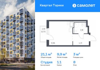 1-к, Квартал Торики ЖК, 1.1 Показать на карте