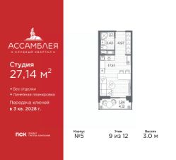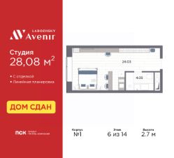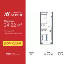 Однокомнатные апартаменты-студия с отделкой в ЖК ''Ladozhsky AVENIR'' на 14 этаже. Общая площадь: 24.22 кв.м., площадь гостиной 20.16 кв.м., из которых 5 кв.м. выделено под кухонную зону. Все окна выходят на одну сторону. В апартаментах один совмещенный санузел. Высота потолков 2.7 м. Апартаменты находятся в корпусе 1. Дом монолитный, одноподъездный, высотой 14 этажей. На этаже 50 квартир. В подъезде 4 пассажирских и 4 грузовых лифта. В шаговой доступности от дома находятся станции метро (расстояние по прямой): ''Ладожская'' (800 м), ''Новочеркасская'' (1.7 км), также недалеко от этого корпуса расположены станции метро: ''Площадь Александра Невского'', ''Чернышевская'', ''Площадь Восстания''. Тест-драйв в готовых апартаментах. Перед покупкой можно арендовать номер для проживания с компенсацией от застройщика. Ladozhsky AVENIR — апартотель бизнескласса в историческом районе Матросская слобода на Правобережье Невы в 10 минутах пешком от станции метро ''Ладожская'' и 10 минутах на автомобиле до Невского проспекта.Апартотель Ladozhsky AVENIR — четвертый проект сети сервисных апартотелей AVENIR и первый мультиформатный проект, включающий в себя апартаменты, офисы и коммерческие помещения. Относится к высокому сегменту ''Бизнес - класс''Все апартаменты сдаются с отделкой ''под ключ'' в единой стилистике. Семейная ипотека на апартаменты не распространяется.Деятельность по сдаче апартаментов в аренду осуществляет управляющая компания PSK INVEST, входящая в группу компаний ''ПСК''.Для передачи апартамента в управление PSK IINVEST необходимо заключить договор на приобретение пакета ''Меблировка и оснащение''. #zmbmAZ
