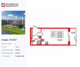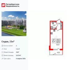 1-комн. квартира-студия от застройщика в Клубный квартал ''Ассамблея'' на 9 этаже. Квартира без отделки, новый владелец может сделать ремонт по своему проекту. Общая площадь: 29.29 кв.м., площадь гостиной 19.43 кв.м., из которых 5 кв.м. выделено под кухонную зону. Все окна выходят на одну сторону. В квартире один балкон, один совмещенный санузел. Высота потолков 3 м. Дом монолитный, двухподъездный, высотой 12 этажей. Квартира находится во 2-й секции в корпусе 3. На этаже 6 квартир. В подъезде 1 пассажирский и 1 грузовой лифт. Начало строительства - 2 квартал 2025 года. Окончание строительства - 3 квартал 2028 года. Оформление сделки по договору долевого участия. В шаговой доступности от жилого комплекса находятся станции метро (расстояние по прямой): ''Горный институт'' (1.0 км), ''Василеостровская'' (1.4 км), ''Приморская'' (1.5 км), также недалеко от этого корпуса находятся станции метро: ''Спортивная'', ''Чкаловская''. ''Клубный квартал Ассамблея'' — проект бизнес-класса на Васильевском острове, в самом сердце исторического Петербурга. Комплекс состоит из пяти корпусов переменной этажности — от 7 до 12 этажей — с выразительной архитектурой в стиле неомодернизма: светлый клинкер, панорамное остекление, просторное лобби с потолками высотой почти 8 метров. Потолки — до 3,2 метров. Подземный паркинг на 667 машиномест. Комфорт и инфраструктура Проект ориентирован на комфортную городскую жизнь. В закрытом дворе — ландшафтное озеленение, современные детские и спортивные площадки. Внутренний клуб для резидентов включает коворкинг, переговорные, кинозал, фитнес и бьюти-зону. IP-домофония с просмотром камер видеонаблюдения, дистанционное открывание дверей и доступа на территорию и в парадную со смартфона и планшета, просмотр показаний счетчиков, приложение для жителей PSK Home. Локация Расположение на Васильевском острове — сильная сторона проекта. До четырех станций метро (''Горный институт'', ''Василеостровская'', ''Спортивная'', ''Приморская'') — 515 минут пешком. В шаговой доступности — зелёные зоны, культурные учреждения, в том числе сад ''Василеостровец'' и ДК имени Кирова. Основные магистрали Большой, Средний и Малый проспекты, Наличная и Уральская улицы. Съезд на ЗСД расположен недалеко от станции метро ''Приморская'', близ береговой линии. Благовещенский и Дворцовый мосты соединяют остров с центром города, а мосты Тучков, Биржевой и Бетанкура — с Петроградской стороной. Застройщик Группа компаний ПСК является одной из ведущих девелоперских компаний Санкт Петербурга. На протяжении 18 лет она возводит в Северной столице качественное жилье премиум, бизнес и комфорт-класса, социальные объекты школы и детские сады, апарт-отели и торговые центры. Является шестикратным обладателем золотого знака ''Надежный застройщик России''. #ZmbVE7