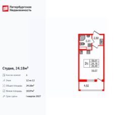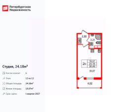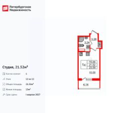Продается уютная студия от застройщика в жилом комплексе ''Бионика Заповедная'' в динамичном Приморском районе.До метро можно добраться на транспорте всего за 11 минут.Удобная, классическая, функциональная европланировка, вместительная прихожая 3.05 м². Общая площадь студии - 21.4 м², жилая 15.3 м², высота потолка 2.77 м.Квартира продается с отделкой ''NORD LINE SILVER ВК NEW''.Что особенного в ЖК ''Бионика Заповедная''?• Оазис в городе 3 минуты пешком до Новоорловского заказника (140 ГА)• Захватывающие виды из окон на хвойный лесопарк• Всесезонный ''Заповедный парк'' во дворе площадью 23000 кв.м.• 5 единых входных групп с авторским дизайном и лаундж-зонами, сити-виллы на первых этажах с палисадниками и высотой потолков до 4 м• Места притяжения: фонтан ''Бионика'', спортивный кластер со скейт-парком, фотозоны с арт-объектами