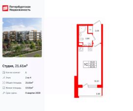 Продается уютная студия от застройщика в жилом комплексе ''Univer City'' в на юге Санкт-Петербурга.До метро можно добраться на транспорте всего за 30 минут.Удобная, классическая, функциональная европланировка, вместительная прихожая 3 м². Общая площадь студии - 21.61 м², жилая 15.01 м², высота потолка 2.77 м.Квартира продается с отделкой ''Норд Лайн серый''.Что особенного в ЖК ''Univer City''?• Малоэтажное строительство• Скандинавские фасады с отделкой керамогранитом, акцентные входные группы• Закрытые внутренние дворы без машин• Пешеходный променад с тематическими зонами, еловый сквер и яблоневый сад• Univer Park, включая SetlSport и SetlKids, площадку для выгула собак и зоны отдыха• Инновационный Лицей Setl с оригинальной архитектурной концепцией и уникальной образовательной средой
