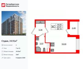 Строим кварталы для жизни с заботой о будущем. Предлагается студия комфорт-класса площадью 26,4 кв.м в корпусе 35.1 на 1-м этаже, в жилом комплексе ''Новое Колпино''.В варианте с предчистовой отделкой мы развели коммуникации по помещениям, выровняли и зашпаклевали стены, подготовили пол к чистовому покрытию. Ваша будущая квартира готова к финишному ремонту. Осталось выбрать, какие оттенки будут в вашем интерьере и воплотить дизайнерские идеи. Приобрести квартиру возможно по специальным акциям от застройщика, с текущими условиями акций можно ознакомиться в блоке ''Акций''.Цена динамическая и может отличаться, уточняйте актуальность у застройщика.Квартал ''Новое Колпино'' — современный квартал в тихом и зеленом районе Санкт-Петербурга. Здесь можно подолгу любоваться пышными кронами деревьев, подставляя лицо теплым лучам солнца. А еще в любой момент можно сесть в машину и уже через час оказаться в сердце Северной столицы. Будет легко планировать поездки: до центра Петербурга, или площади Восстания, — 25 минут на поезде. С территории квартала удобно выезжать на крупные магистрали: путь до Южного шоссе займет 15 минут на авто, а до Петрозаводского шоссе — всего 6 минут. В 20 минутах на авто находится метро ''Рыбацкое'', а в 7 минутах — ж/д станция Колпино. Проводите выходные на природе в Колпинском парке, который находится недалеко от квартала, на берегу реки Ижоры. Летом здесь можно вместе с детьми веселиться на аттракционах, кататься на лодке, играть в бадминтон или волейбол. А еще можно захватить орехов и покормить белок. Всего 7 минут на авто или автобусе — и вы в центре города Колпино. Взрослых впечатлит русская архитектура старинных церквей, а детям понравится забавный памятник героям мультфильма ''Трое из Простоквашино''. В ''Новом Колпино'' будут работать 4 детских сада, 3 из них уже готовы встречать малышей. Ребята постарше могут ходить на занятия в школу с собственным бассейном, в проекте уже работает новая современная школа с бассейномКорпуса высотой 11 этажей с французскими и панорамными балконами отделаны штукатуркой и облицовочным кирпичом. Вдохновение для палитры нам подарили оттенки рассветного неба: терракотовый, персиковый, песочный. Во дворе найдется интересное занятие для всех жителей квартала. Взрослые смогут устраивать тренировки на свежем воздухе в спортивных зонах, дети будут целый день веселиться на игровых площадках. А еще мы позаботились о вашей безопасности и закрыли дворы от машин. Возвращайтесь домой с чемоданом из путешествия или коляской из парка. На пути в подъезд вы не встретите ступенек. Оставить транспорт можно будет в специальном помещении на первом этаже. По желанию вы сможете получить ключи от квартиры с готовой отделкой. Мы положим ламинат, поклеим обои, установим мебель и сантехнику. Доступен вариант с готовой кухней — бежевые тона отделки станут фоном для интерьера мечты. Чтобы сразу отпраздновать новоселье, закажите у нас декор и мебельные сеты. А если хочется воплотить собственные идеи в интерь